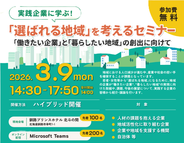 本セミナーでは、若者・女性等が“働く視点”や“暮らす視点”から、企業や地域の魅力を高める取組