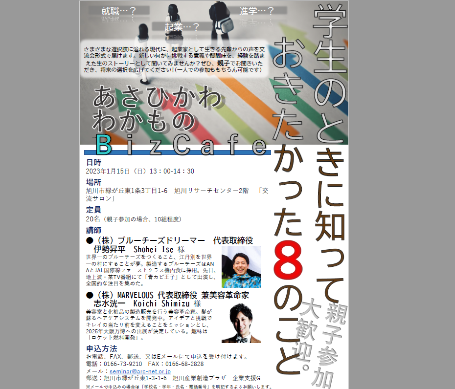 郵送:旭川市緑が丘東1-3-1-6 旭川産業創造プラザ 企業支援G