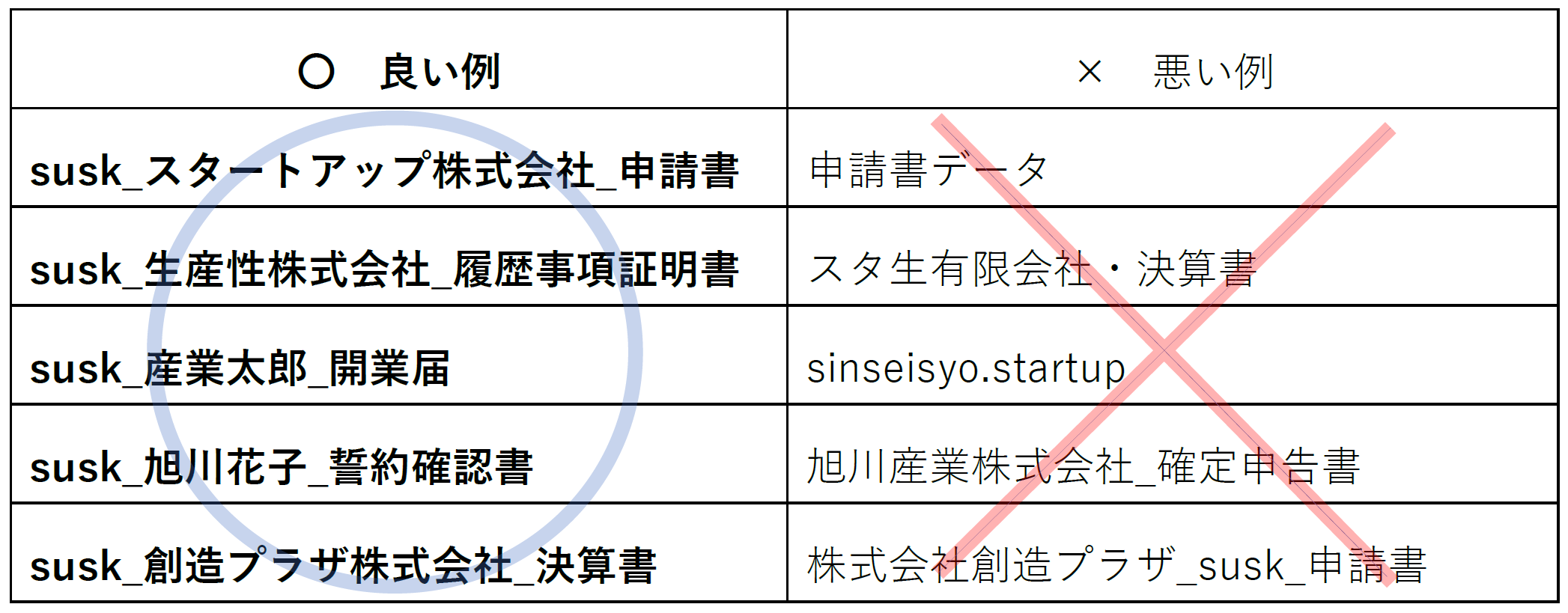申請されるファイル名は全て「susk_“事業者名”_“データ名”」に統一してください。